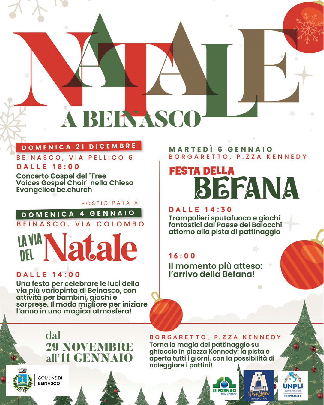 In occasione della Festa di Natale 2025 organizzata dalla Pro Loco di Beinasco, domenica 4 gennaio 2026 saranno in vigore alcune modifiche temporanee alla circolazione in via Cristoforo Colombo e nelle vie limitrofe.