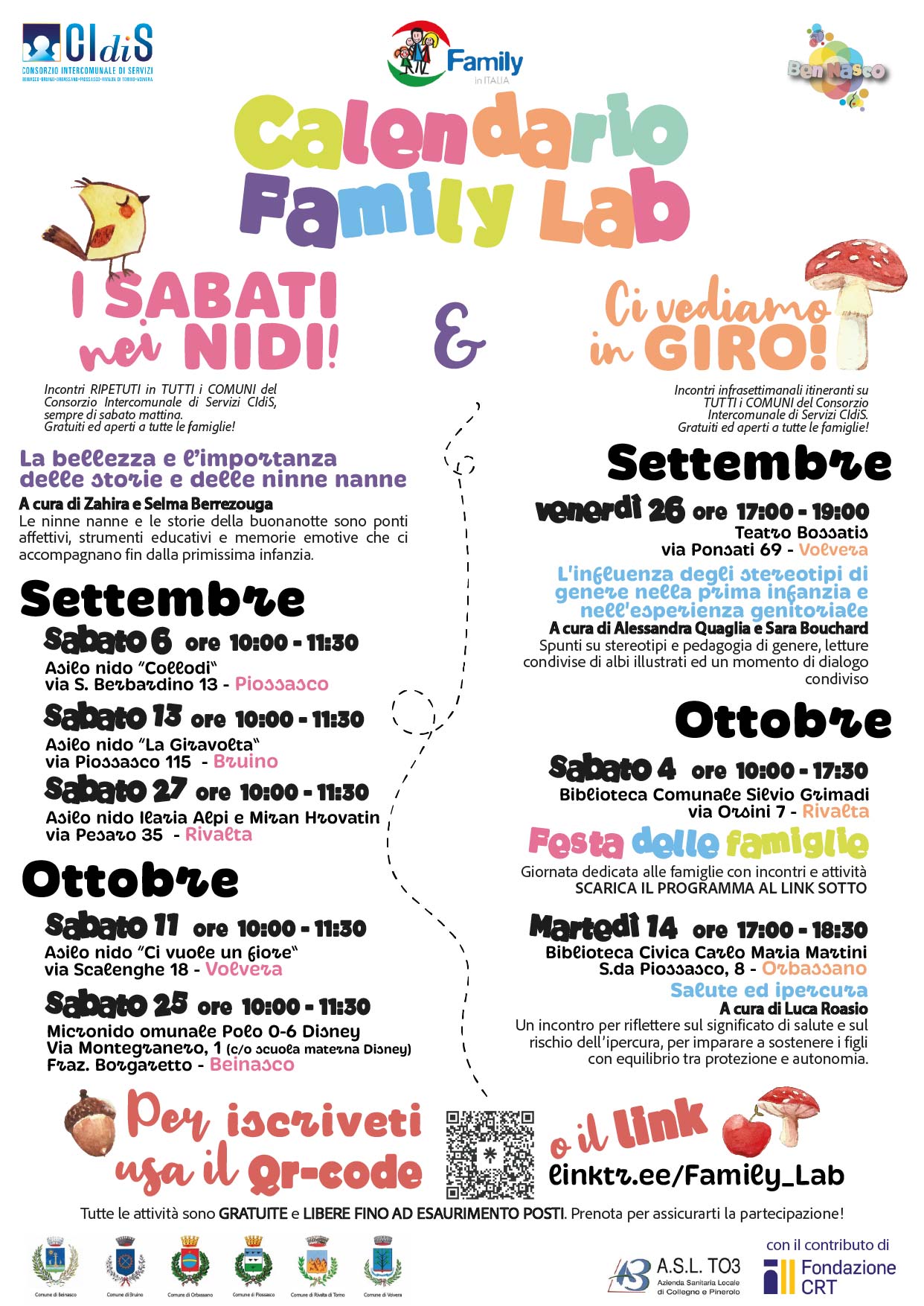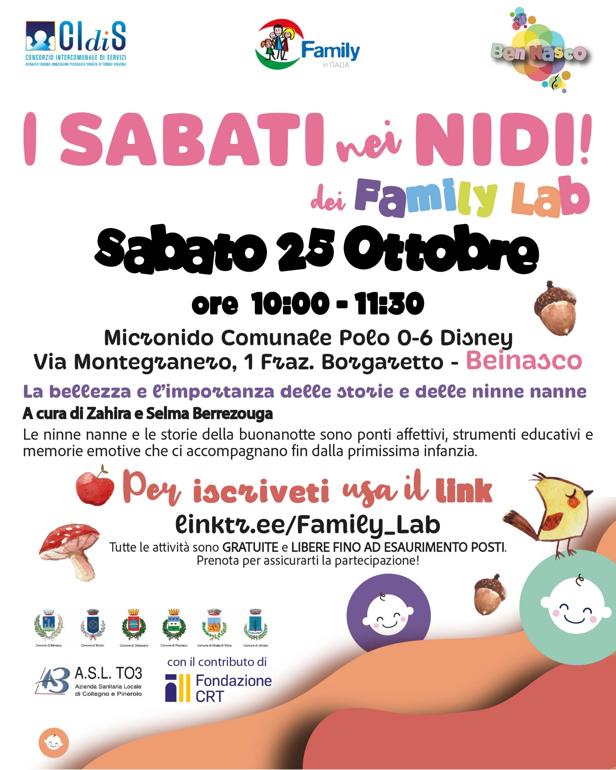 Calendario delle attività dei "Family -Lab "previste per i mesi di Settembre- Ottobre