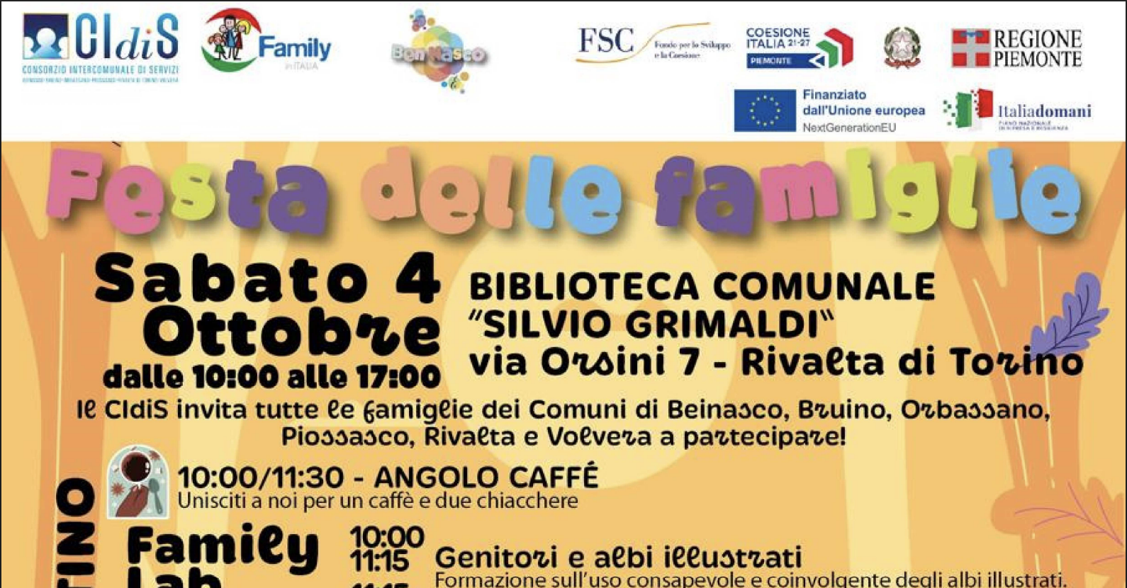 Il prossimo 4 Ottobre si terrà una Festa rivolta alle Famiglie a Rivalta
