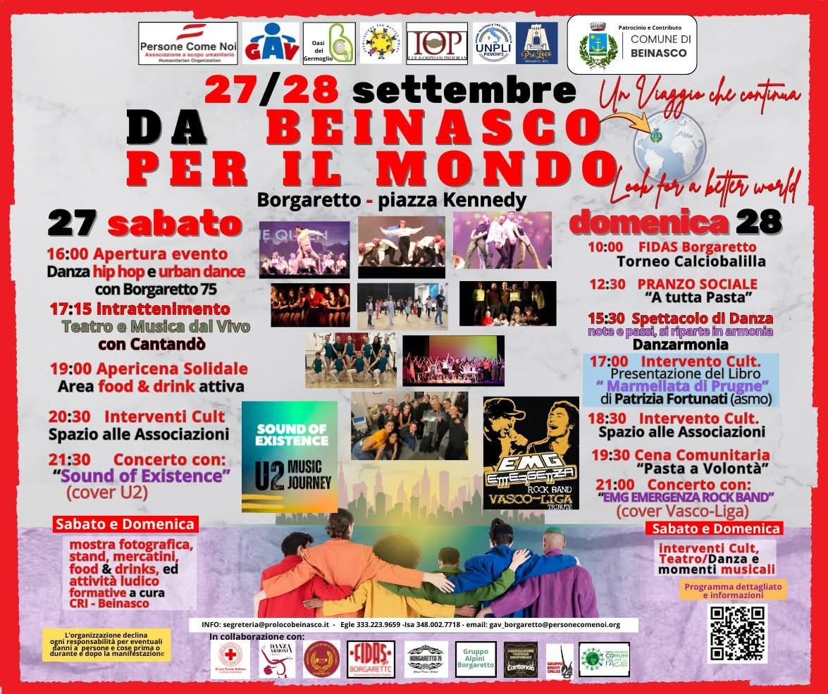 Il Comune di Beinasco, insieme alla Pro Loco, è lieto di annunciare la seconda edizione dell'evento solidale "Da Beinasco per il Mondo" che vedrà protagoniste a Borgaretto, in piazza Kennedy, diverse associazioni del territorio impegnate nella cooperazione allo sviluppo.